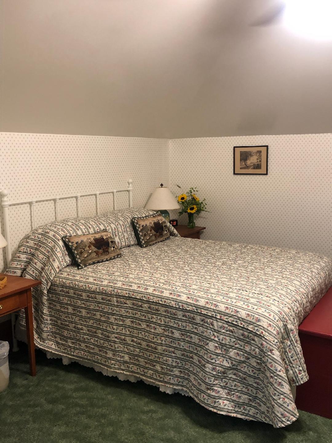 This lovely 3rd-floor room has an attached sitting room with a double sofa bed. The bedroom features a Queen-sized bed and an en suite bathroom with clawfoot tub and shower.